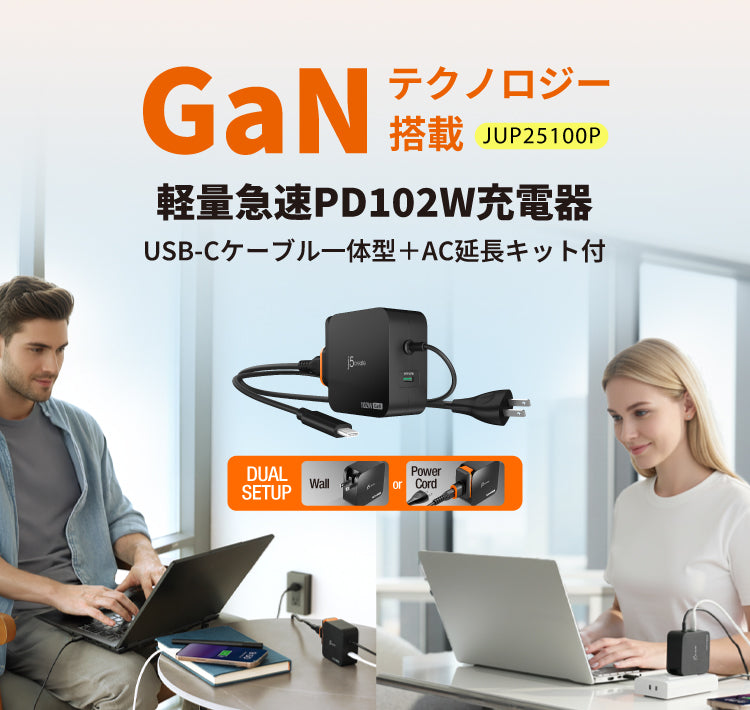 | 2024-07-05 j5create、『ケーブル一体型PD100W GaN 2ポート急速充電器JUP25102』 『スリム設計PD65W GaN 2ポート急速充電器JUP2465』 『超小型PD40W GaN2ポート急速充電器JUP2540W』 『PD70W GaN 4ポート急速充電器 JUP4370』 4つのPD対応GaN急速充電器を7月より順次発売! |