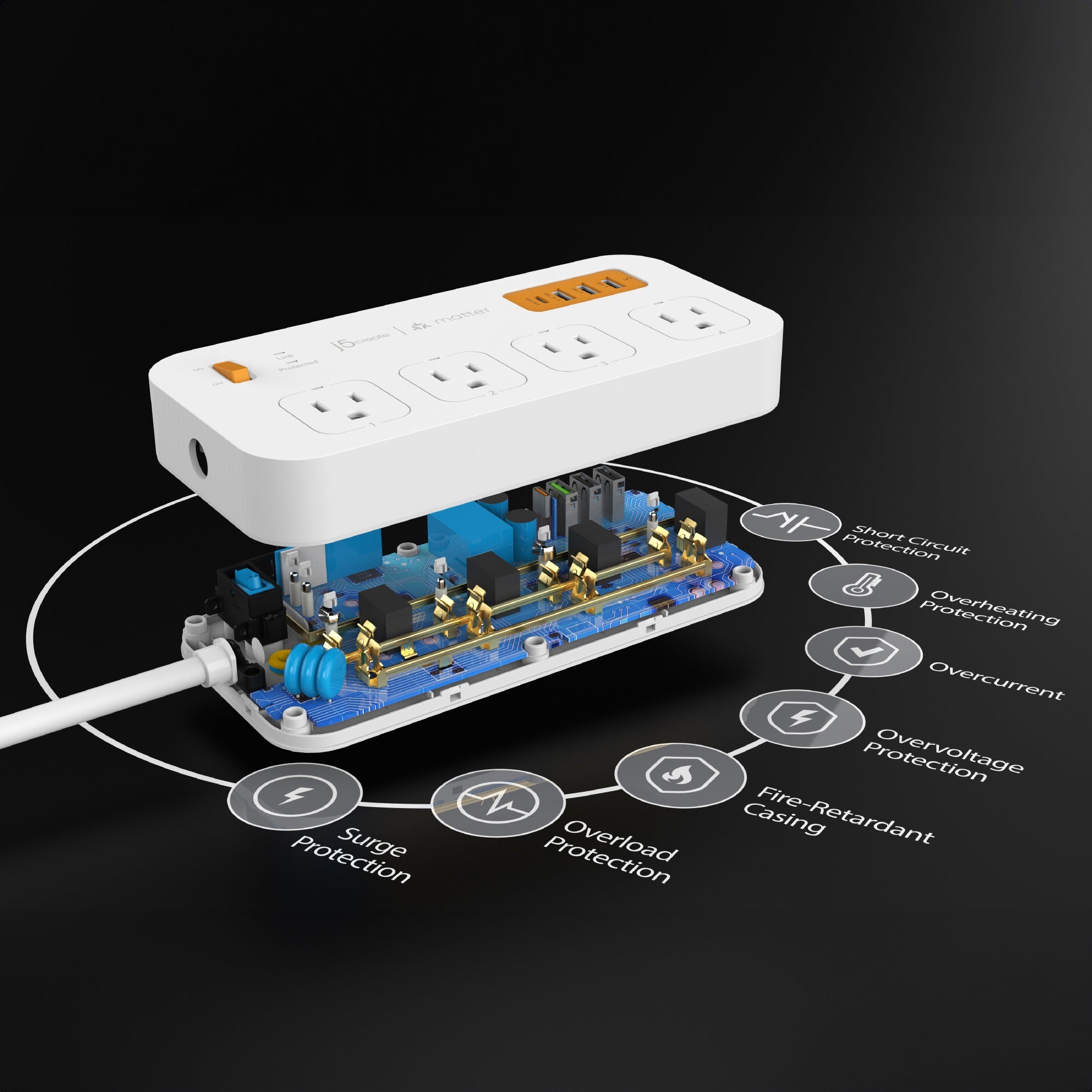 短絡保護、過負荷保護、過電圧保護、サージ保護、過熱保護などの高度な多重保護機能を搭載。